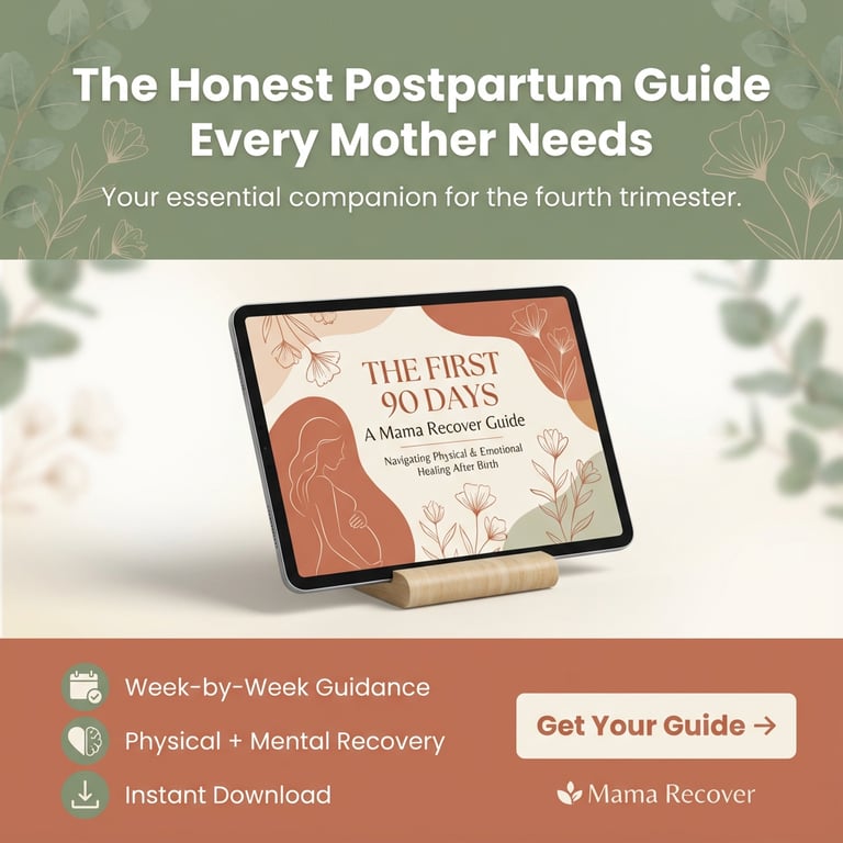 Mama Recover creates gentle, realistic postpartum recovery guides for new and expecting mothers. Our flagship product, "The First 90 Days," is a week-by-week digital guide covering physical healing, mental health support, and practical tools for navigating the fourth trimester—without the pressure to "bounce back."